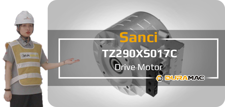 Sanci TZ290XS017C Drive Motor is a highly integrated electric drive system with a voltage platform of 540 VDC, rated/peak power of 77.5/150 kW, rated/peak torque of 238/554 Nm, and rated/maximum speed of 3118/7500 rpm.