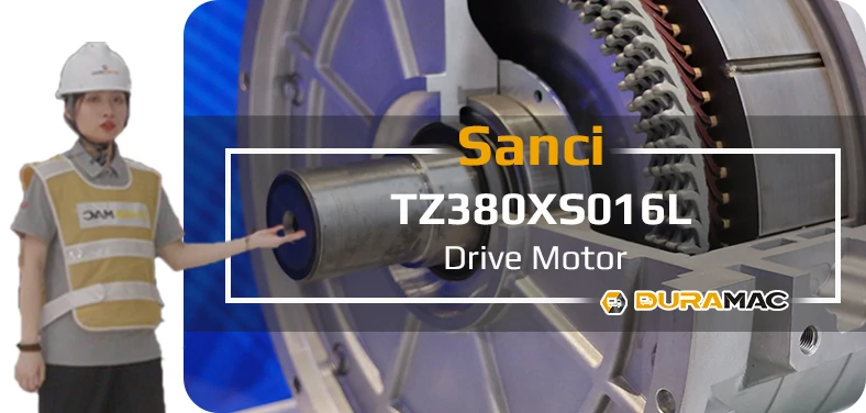 Sanci TZ380XS016L Drive Motor is a highly integrated electric drive system with a voltage platform of 540 VDC, rated/peak power of 120/240 kW, rated/peak torque of 1200/2800 Nm, and rated/maximum speed of 955/3000 rpm.
